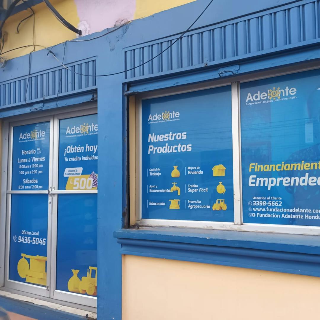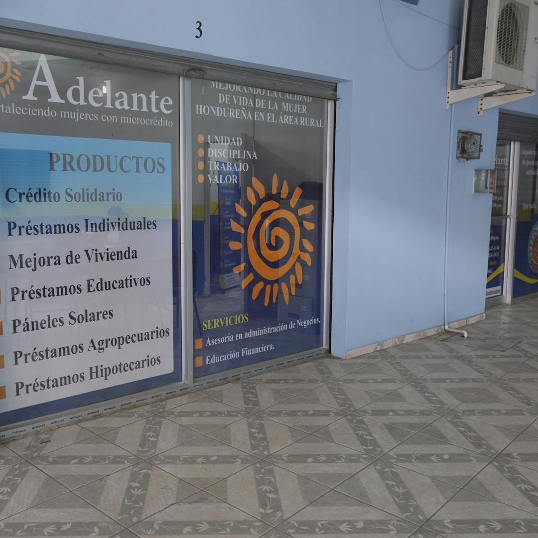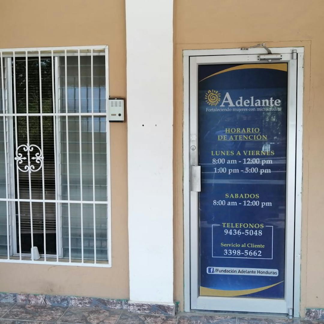 Adelante cuenta con 5 agencias a nivel nacional ubicadas en Tocoa, La Ceiba, El Progreso, Siguatepeque y Choluteca. Cada agencia atiende ciudades y comunidades aledañas con el objetivo de llegar a impactar a mas personas.